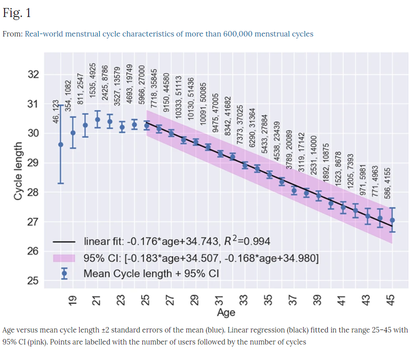 For example, take a look at cycle length broken out by age (from Jonathan Bull’s paper):